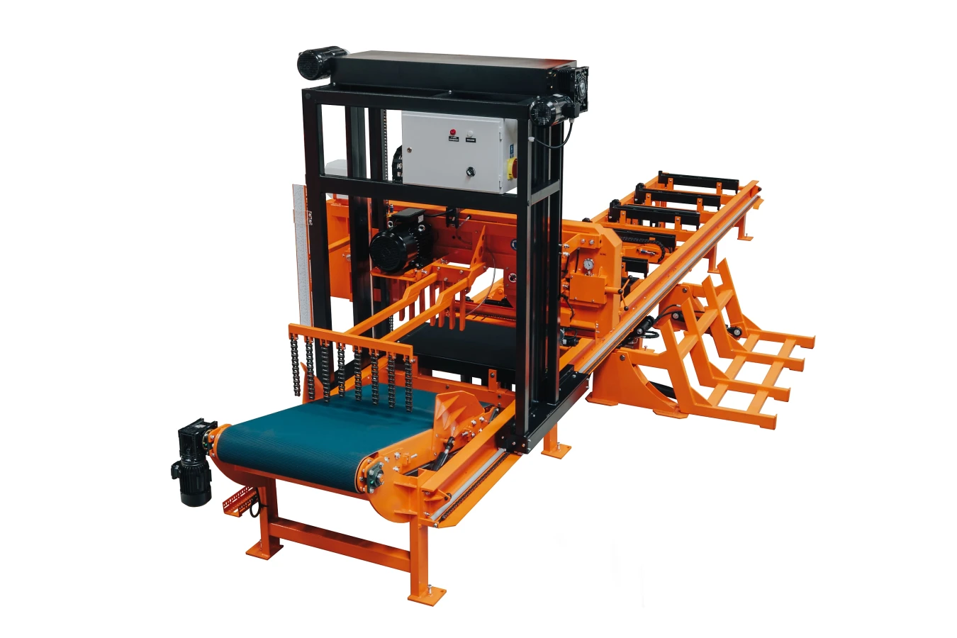 - przenośnik taśmowy do odbioru desek o długości 6 m