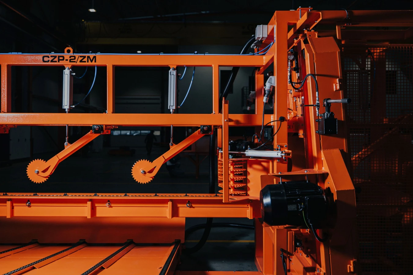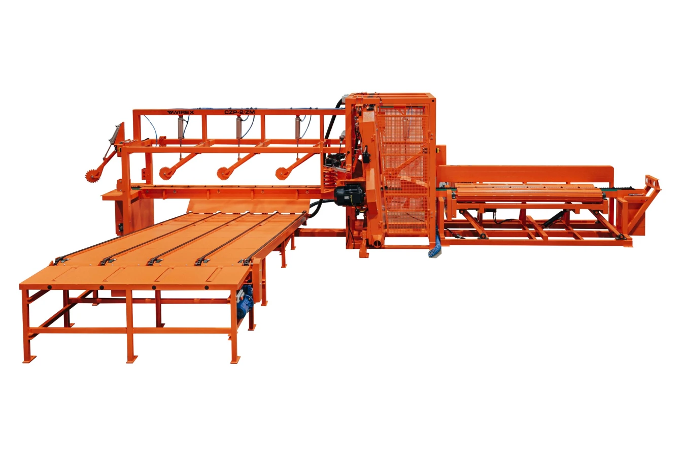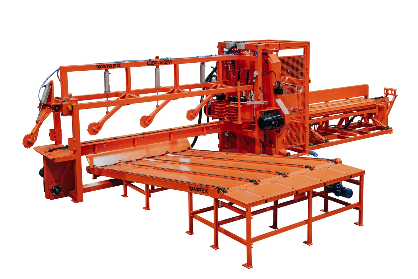 Pilarka CZP-2/ZM ze stołem odbiorczym do oflisów przystosowana jest do obróbki drewna o średnicy do 420 mm. Wycina dwustronnie odkrytą pryzmę o szerokości do 400 mm oraz dwa oflisy, które grawitacyjnie spadają na podajnik odbiorczy. Zastosowanie systemu nachylenia głowic tnących umożliwia optymalny proces cięcia oraz odciąża silniki główne przy rozpoczynaniu cięcia każdej kolejnej kłody. W opcji dostępna jest również zautomatyzowana, przemysłowa wersja pilarki będąca uzupełnieniem pełnych, automatycznych linii do przetarcia surowca okrągłego.
