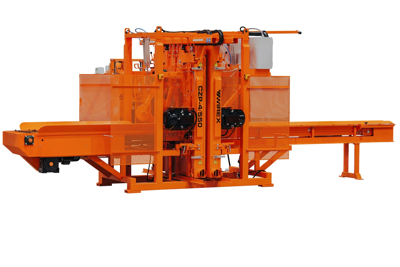 Wychodząc naprzeciw potrzebom naszych klientów, związanych ze zwiększeniem wydajności przecieranego surowca, stworzyliśmy pilarkę taśmową CZP-4/A WZM o średnim przetarciu 5 m3 na godzinę. Przy zastosowaniu systemu podawania kłód oraz stołów odbierających pryzmy, deski i zrzyny, wydajność maszyny wzrasta nawet do 10 m3 na godzinę – jednocześnie minimalizując koszty produkcyjne. Pilarka przystosowana jest do obróbki drewna zarówno stosowego jaki i kłód tartacznych o średnicy do 550 mm oraz długości do 3000 mm. Cztery głowice tnące dają możliwość wycięcia dwustronnie odkrytej pryzmy wraz z dwoma deskami po bokach bądź trzech pryzm jednocześnie. Stabilność cięcia zapewniają dwa pneumatyczne siłowniki, które dociskają obrabiany surowiec. Pilarka w podstawowym wyposażeniu posiada 4 silniki o mocy 8,1 kW, z możliwością zamontowania większych silników - 4 x 12 kW, bądź 2 x 12 kW w środku i 2 x 8,1 kW po bokach.